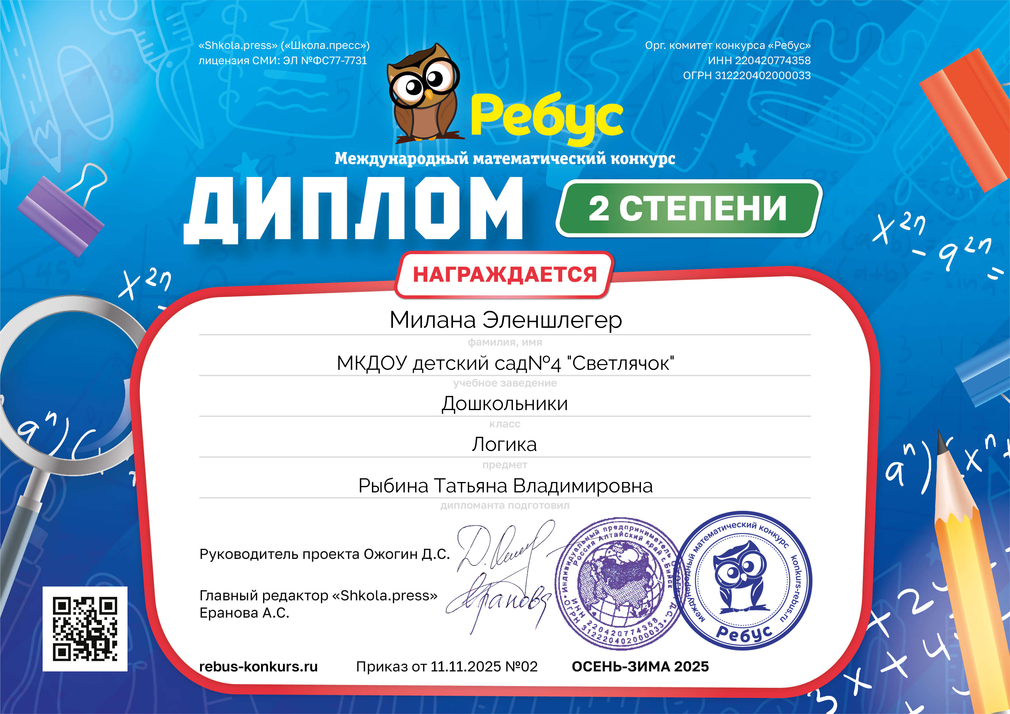 II Всероссийский конкурс детских творческих работ "дошкольное наследие А.С Пушкина"